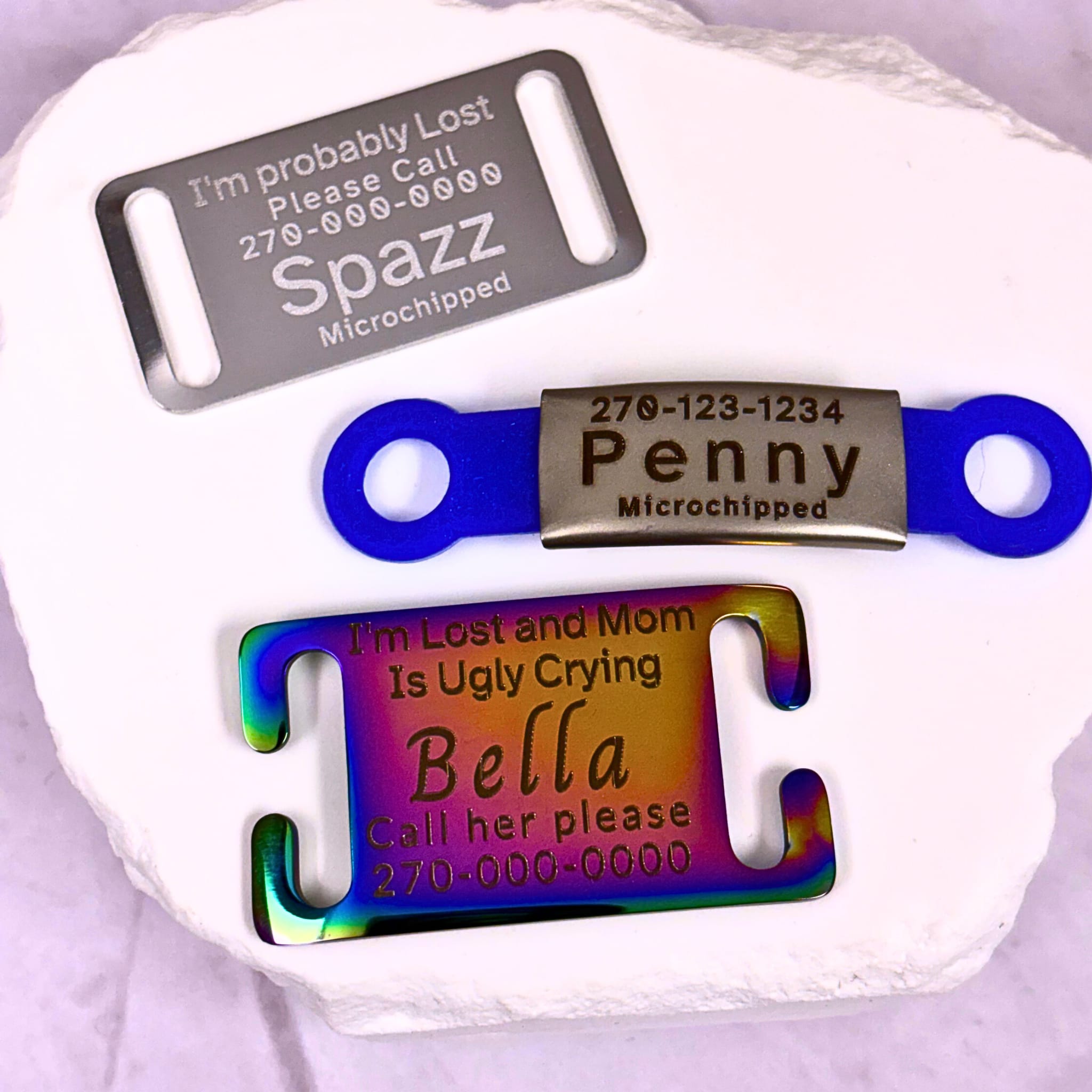 Born from the boundless energy of our Aussie Mix, Spazz, this little corner of Soaring Phoenix Studios is all about celebrating the pets wo light up our lives. We create custom pet tags that are as unique, quirky and lovable as your four-legged best friend.  See the selection at: SpazzDazzled.com  Check back often, as we are adding new products all the time.
